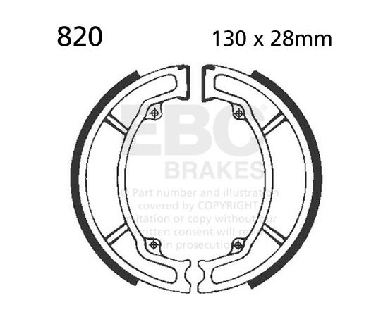 EBC Brakes plain motorcycle replacement brake shoes are an OE quality replacement brake shoe made with boned brake linings and using high pressure die cast aluminium platforms for two wheeled machines. Shoes are edge trimmed and radius ground exactly into the brake drum. They have chamfers on the ends of the lining and come complete with OE style brake shoe springs.