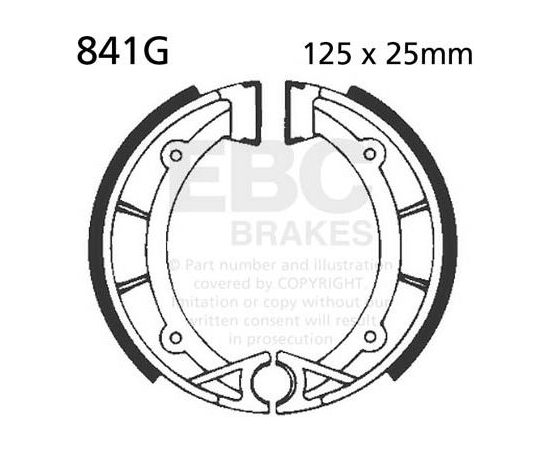 EBC Brakes motorcycle grooved replacement brake shoes have angled grooves that are designed to channel away water, dirt and dust from the braking area. This helps to improve the braking and extend the life of the shoe and brake drum. Grooves are made using pressed steel platforms for ATV brake shoes or with high pressure die cast aluminium platforms for two wheeled machines.