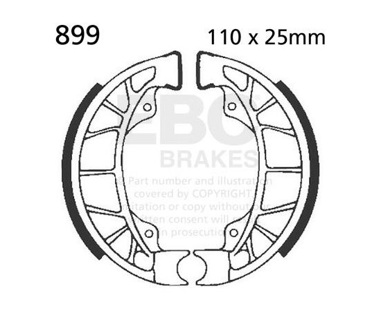 EBC Brakes plain motorcycle replacement brake shoes are an OE quality replacement brake shoe made with boned brake linings and using high pressure die cast aluminium platforms for two wheeled machines. Shoes are edge trimmed and radius ground exactly into the brake drum. They have chamfers on the ends of the lining and come complete with OE style brake shoe springs.