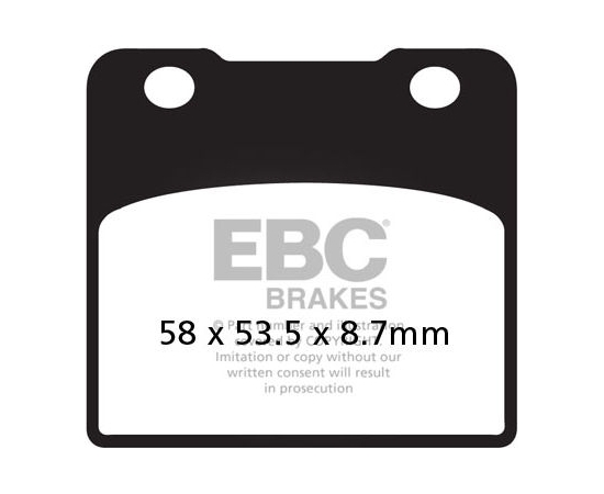 UK made using high tech ECO friendly pad compound that delivers fingertip stopping power. Suitable for all road bikes and scooters, the E327 grade compound has been a best seller for over 15 years with over 40 million sets sold worldwide. Fully TÜV tested and now ECE R 90 brake safety test appoved, these pads were rated by German Motorrad Magazine as a top quality organic pad and now proven suitable even as a sintered pad replacement. All EBC organic pads are now built on backing plates made with the patented Nucap NRS hook retention system guaranteeing zero chance of pad debonding after extended use or corrosion. Not for race or track use.
