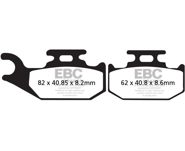 For street or off road use the hybrid carbon impregnated TT formula pads deliver medium lifetime with powerful cool disc temperature braking due to the carbon granules within the material and are extremely popular on ATV and MX sport bikes in non contaminated riding conditions or streetbike enduro models. For longer life or extreme mud riding, see the EBC Brakes MXS series pads or for ATV the R series heavy duty sintered pads.