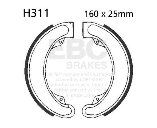 EBC Brakes plain motorcycle replacement brake shoes are an OE quality replacement brake shoe made with boned brake linings and using high pressure die cast aluminium platforms for two wheeled machines. Shoes are edge trimmed and radius ground exactly into the brake drum. They have chamfers on the ends of the lining and come complete with OE style brake shoe springs.