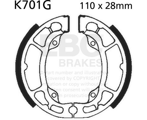 EBC Brakes motorcycle grooved replacement brake shoes have angled grooves that are designed to channel away water, dirt and dust from the braking area. This helps to improve the braking and extend the life of the shoe and brake drum. Grooves are made using pressed steel platforms for ATV brake shoes or with high pressure die cast aluminium platforms for two wheeled machines.