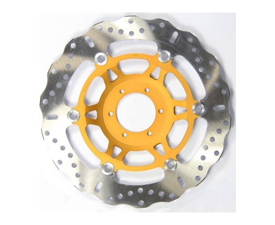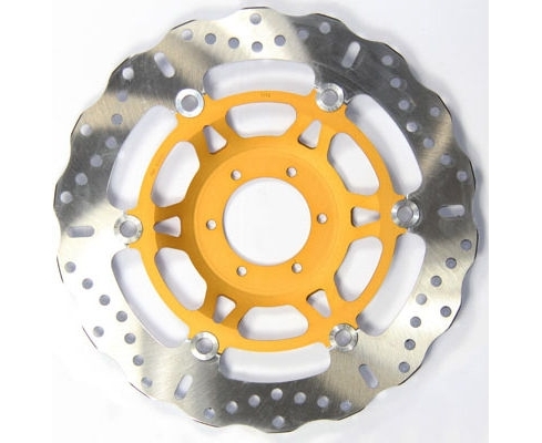 These discs are British made using German mill rolled precision stainless steel rotor blades with weight reducing contoured profile which are mounted onto lightweight alloy centre hubs using the EBC patented SD square drive button technology. Square drive buttons resist loosening and prevent vibration common with low cost circular rivets or buttons. Rotor blades are precision ground for fast and perfect pad bed-in. All EBC discs are 100% inspected for accuracy and runout. New pads must be installed, please choose from our wide selection of organic or sintered pads elsewhere on this site.
