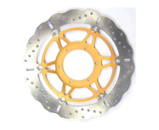 These discs are British made using German mill rolled precision stainless steel rotor blades with weight reducing contoured profile which are mounted onto lightweight alloy centre hubs using the EBC patented SD square drive button technology. Square drive buttons resist loosening and prevent vibration common with low cost circular rivets or buttons. Rotor blades are precision ground for fast and perfect pad bed-in. All EBC discs are 100% inspected for accuracy and runout. New pads must be installed, please choose from our wide selection of organic or sintered pads elsewhere on this site.