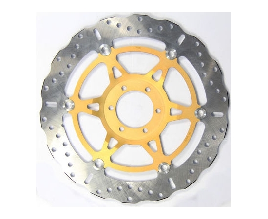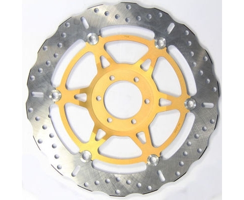 These discs are British made using German mill rolled precision stainless steel rotor blades with weight reducing contoured profile which are mounted onto lightweight alloy centre hubs using the EBC patented SD square drive button technology. Square drive buttons resist loosening and prevent vibration common with low cost circular rivets or buttons. Rotor blades are precision ground for fast and perfect pad bed-in. All EBC discs are 100% inspected for accuracy and runout. New pads must be installed, please choose from our wide selection of organic or sintered pads elsewhere on this site.