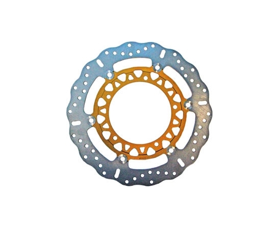 These discs are British made using German mill rolled precision stainless steel rotor blades with weight reducing contoured profile which are mounted onto lightweight alloy centre hubs using the EBC patented SD square drive button technology. Square drive buttons resist loosening and prevent vibration common with low cost circular rivets or buttons. Rotor blades are precision ground for fast and perfect pad bed-in. All EBC discs are 100% inspected for accuracy and runout. New pads must be installed, please choose from our wide selection of organic or sintered pads elsewhere on this site.