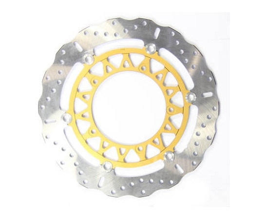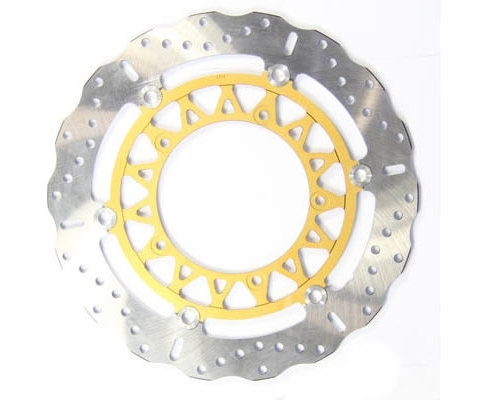 These discs are British made using German mill rolled precision stainless steel rotor blades with weight reducing contoured profile which are mounted onto lightweight alloy centre hubs using the EBC patented SD square drive button technology. Square drive buttons resist loosening and prevent vibration common with low cost circular rivets or buttons. Rotor blades are precision ground for fast and perfect pad bed-in. All EBC discs are 100% inspected for accuracy and runout. New pads must be installed, please choose from our wide selection of organic or sintered pads elsewhere on this site.