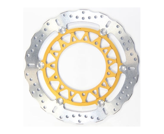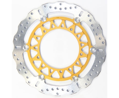 These discs are British made using German mill rolled precision stainless steel rotor blades with weight reducing contoured profile which are mounted onto lightweight alloy centre hubs using the EBC patented SD square drive button technology. Square drive buttons resist loosening and prevent vibration common with low cost circular rivets or buttons. Rotor blades are precision ground for fast and perfect pad bed-in. All EBC discs are 100% inspected for accuracy and runout. New pads must be installed, please choose from our wide selection of organic or sintered pads elsewhere on this site.