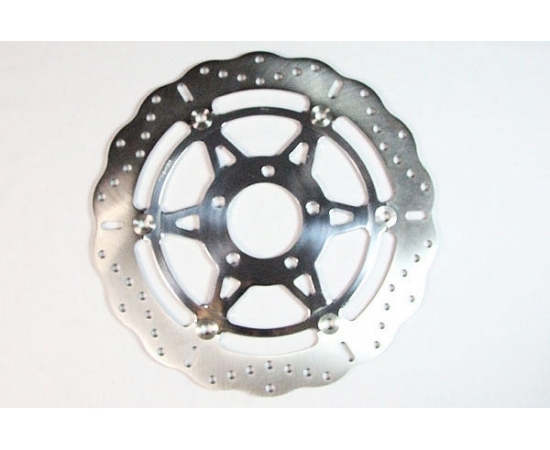 The EBC Brakes® universal custom disc for naked bikes is constructed using a stainless steel rotor blade with a polished and heat lacquered alloy centre hub. Each disc can be used for either left or right fitment and the quality mirror-like polished finish will improve the look of your bike instantly. The slotted and contoured profile gives reduced weight without compromising performance and also gives improved pad brake-in and reduces disc damage. The outer ring is mounted to the centre hub using EBC Brakes® patented SD-System™ square drive hardware. The SD-System™ buttons have flat sides and are mounted into square pockets in the hub and the ring. This system allows the ring to expand and contract when needed under heavy braking which eliminates brake vibration and disc distortion. Do not attempt to polish the lacquered centre hub as this will destroy the lacquer coating.