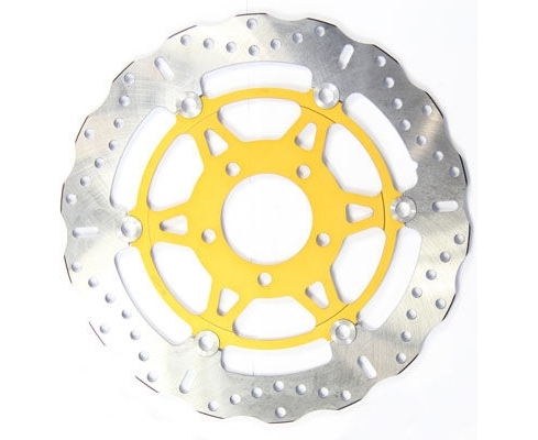 These discs are British made using German mill rolled precision stainless steel rotor blades with weight reducing contoured profile which are mounted onto lightweight alloy centre hubs using the EBC patented SD square drive button technology. Square drive buttons resist loosening and prevent vibration common with low cost circular rivets or buttons. Rotor blades are precision ground for fast and perfect pad bed-in. All EBC discs are 100% inspected for accuracy and runout. New pads must be installed, please choose from our wide selection of organic or sintered pads elsewhere on this site.