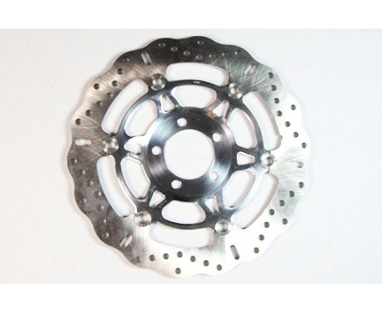 The EBC Brakes® universal custom disc for naked bikes is constructed using a stainless steel rotor blade with a polished and heat lacquered alloy centre hub. Each disc can be used for either left or right fitment and the quality mirror-like polished finish will improve the look of your bike instantly. The slotted and contoured profile gives reduced weight without compromising performance and also gives improved pad brake-in and reduces disc damage. The outer ring is mounted to the centre hub using EBC Brakes® patented SD-System™ square drive hardware. The SD-System™ buttons have flat sides and are mounted into square pockets in the hub and the ring. This system allows the ring to expand and contract when needed under heavy braking which eliminates brake vibration and disc distortion. Do not attempt to polish the lacquered centre hub as this will destroy the lacquer coating.