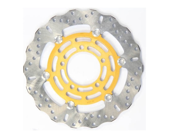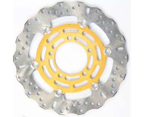 These discs are British made using German mill rolled precision stainless steel rotor blades with weight reducing contoured profile which are mounted onto lightweight alloy centre hubs using the EBC patented SD square drive button technology. Square drive buttons resist loosening and prevent vibration common with low cost circular rivets or buttons. Rotor blades are precision ground for fast and perfect pad bed-in. All EBC discs are 100% inspected for accuracy and runout. New pads must be installed, please choose from our wide selection of organic or sintered pads elsewhere on this site.