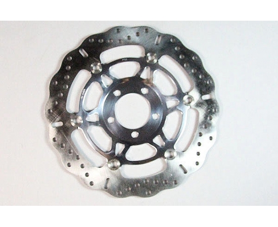 The EBC Brakes® universal custom disc for naked bikes is constructed using a stainless steel rotor blade with a polished and heat lacquered alloy centre hub. Each disc can be used for either left or right fitment and the quality mirror-like polished finish will improve the look of your bike instantly. The slotted and contoured profile gives reduced weight without compromising performance and also gives improved pad brake-in and reduces disc damage. The outer ring is mounted to the centre hub using EBC Brakes® patented SD-System™ square drive hardware. The SD-System™ buttons have flat sides and are mounted into square pockets in the hub and the ring. This system allows the ring to expand and contract when needed under heavy braking which eliminates brake vibration and disc distortion. Do not attempt to polish the lacquered centre hub as this will destroy the lacquer coating.