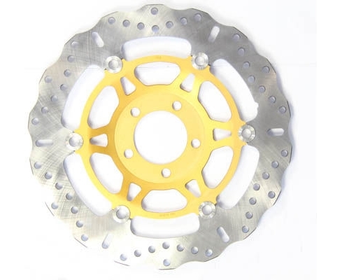 These discs are British made using German mill rolled precision stainless steel rotor blades with weight reducing contoured profile which are mounted onto lightweight alloy centre hubs using the EBC patented SD square drive button technology. Square drive buttons resist loosening and prevent vibration common with low cost circular rivets or buttons. Rotor blades are precision ground for fast and perfect pad bed-in. All EBC discs are 100% inspected for accuracy and runout. New pads must be installed, please choose from our wide selection of organic or sintered pads elsewhere on this site.