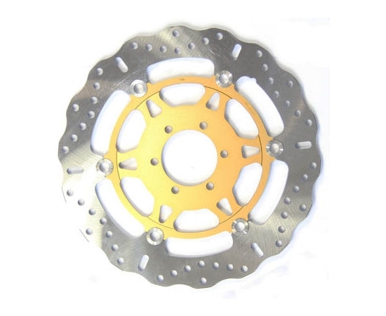These discs are British made using German mill rolled precision stainless steel rotor blades with weight reducing contoured profile which are mounted onto lightweight alloy centre hubs using the EBC patented SD square drive button technology. Square drive buttons resist loosening and prevent vibration common with low cost circular rivets or buttons. Rotor blades are precision ground for fast and perfect pad bed-in. All EBC discs are 100% inspected for accuracy and runout. New pads must be installed, please choose from our wide selection of organic or sintered pads elsewhere on this site.
