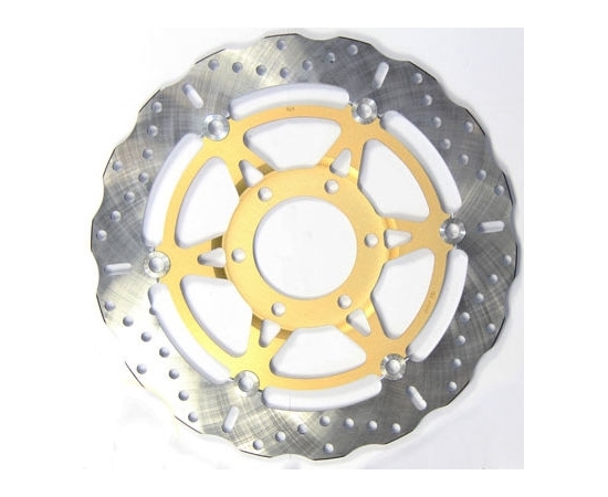 These discs are British made using German mill rolled precision stainless steel rotor blades with weight reducing contoured profile which are mounted onto lightweight alloy centre hubs using the EBC patented SD square drive button technology. Square drive buttons resist loosening and prevent vibration common with low cost circular rivets or buttons. Rotor blades are precision ground for fast and perfect pad bed-in. All EBC discs are 100% inspected for accuracy and runout. New pads must be installed, please choose from our wide selection of organic or sintered pads elsewhere on this site.