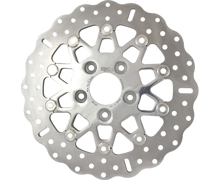 Great looks and great brakes with the EBC Brakes® custom Vee twin brake disc range now available with polished stainless steel or new high lustre black chromed stainless centre hubs. These discs convert flat solid OEM units to a fully floating design but are a direct fit for the stock disc and require no other modifications.