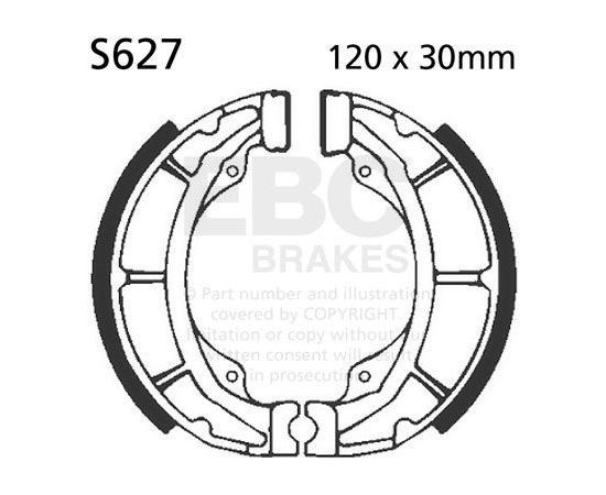 EBC Brakes plain motorcycle replacement brake shoes are an OE quality replacement brake shoe made with boned brake linings and using high pressure die cast aluminium platforms for two wheeled machines. Shoes are edge trimmed and radius ground exactly into the brake drum. They have chamfers on the ends of the lining and come complete with OE style brake shoe springs.