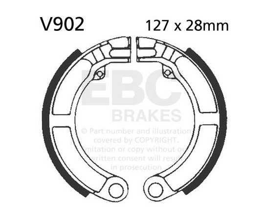 EBC Brakes plain motorcycle replacement brake shoes are an OE quality replacement brake shoe made with boned brake linings and using high pressure die cast aluminium platforms for two wheeled machines. Shoes are edge trimmed and radius ground exactly into the brake drum. They have chamfers on the ends of the lining and come complete with OE style brake shoe springs.