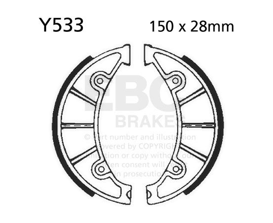 EBC Brakes plain motorcycle replacement brake shoes are an OE quality replacement brake shoe made with boned brake linings and using high pressure die cast aluminium platforms for two wheeled machines. Shoes are edge trimmed and radius ground exactly into the brake drum. They have chamfers on the ends of the lining and come complete with OE style brake shoe springs.