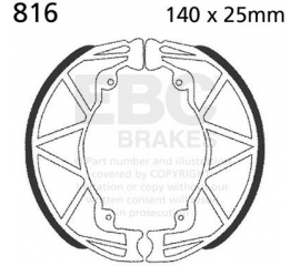 Article Number : 816 EAN :5050953100154 EBC Brakes plain motorcycle replacement brake shoes are an OE quality replacement brake shoe made with boned brake linings and using high pressure die cast aluminium platforms for two wheeled machines. Shoes are edge trimmed and radius ground exactly into...