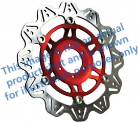 Article Number : VR2126RED EAN :5050953798184 Hand built and inspected to minute tolerances Ultra lightweight but strong Patented square drive button system Designed as an OEM improvement Café racer visuals Great fit and superb looks Red centre hub These discs are British made using German mill...
