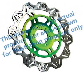 Article Number : VR4154GRN EAN :5050953625862 Hand built and inspected to minute tolerances Ultra lightweight but strong Patented square drive button system Designed as an OEM improvement Café racer visuals Great fit and superb looks Green centre hub These discs are British made using German...
