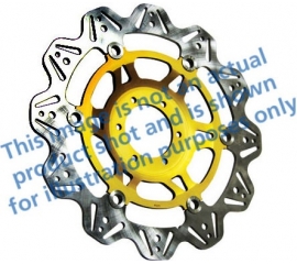 Article Number : VR614GLD EAN :5050953625909 Hand built and inspected to minute tolerances Ultra lightweight but strong Patented square drive button system Designed as an OEM improvement Café racer visuals Great fit and superb looks Gold centre hub These discs are British made using German mill...