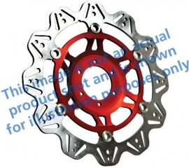 Article Number : VR626RED EAN :5050953626104 Hand built and inspected to minute tolerances Ultra lightweight but strong Patented square drive button system Designed as an OEM improvement Café racer visuals Great fit and superb looks Red centre hub These discs are British made using German mill...