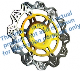 Article Number : VR640GLD EAN :5050953625961 Hand built and inspected to minute tolerances Ultra lightweight but strong Patented square drive button system Designed as an OEM improvement Café racer visuals Great fit and superb looks Gold centre hub These discs are British made using German mill...