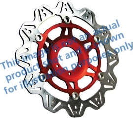 Article Number : VR629RED EAN :5050953626111 Hand built and inspected to minute tolerances Ultra lightweight but strong Patented square drive button system Designed as an OEM improvement Café racer visuals Great fit and superb looks Red centre hub These discs are British made using German mill...