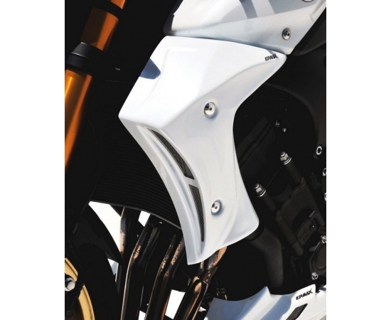 These Ermax Radiator Scoops Are Indispensable For Your Fz8 N 2010/2017 (N Version Only). They Cover The Radiator Sides, In Extension Of The Tank. You Can Personalize Your Motorcycle, With The Color You Want : Original Yamaha Colors, Carbon Look Or Unpainted Black.