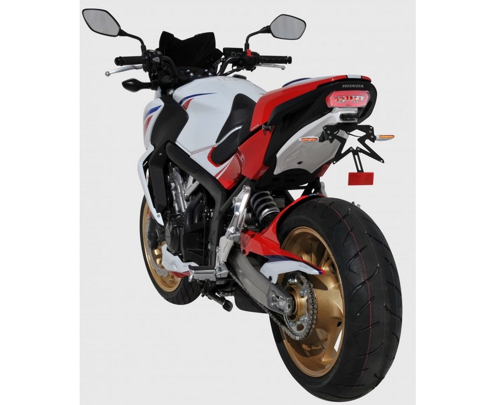 This Very Nice Ermax Undertray Will Give A Lift To Your Cb 650 F 2014/2016 By Removing The Rear Mud Flap And Adding Some Color. It Contains An Integrated Plate Lighting, And A Metallic Support Permitting To Refit The Number Plate.