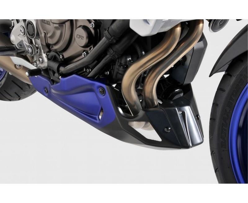 This Belly Pan With Central Part Accessorizes Your Mt07 / Fz07 2014/2017, In The Color You Want : Original Yamaha Color, Unpainted Black Or Carbon Look. Ermax Also Created Two-Coloured Versions For This Product, Still With Your Motorcycle Colors. The Carbon Look Will Need Supplementary Manufacturing Delay.