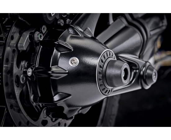 EP Spindle Bobbins for the BMW R nineT are produced to defend the lower front forks and brake calipers from expensive damage. If an incident were to occur, the strong materials hope to take impact first. Furthermore, the innovative Evotech Performance design ensures the nylon bobbin heads can rotate above the aluminium to reduce wear on the part and stress on the wheel.