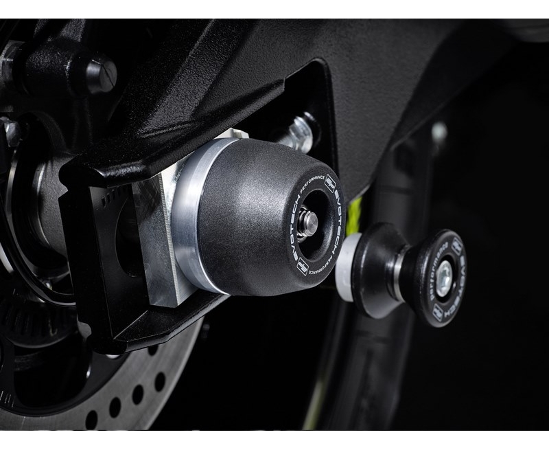 Features of EP Rear Spindle Bobbins for the Suzuki V-Strom 1000 Nylon bobbin head plus an aluminium core Strong rolled thread spindle rod mounts the bobbins to the rear wheel All fixings included in the kit Easy to install Made from the highest quality materials by Evotech Performance Replacement bobbin heads can be purchased separately What is Spindle Bobbin Crash Protection? The nylon bobbin, sitting on top of the aluminium core, protrudes either side from the expensive swing arm to be the first to receive impact in any crash. With EP's innovative design, the nylon can rotate with the impact and reduce stress and damage on the motorcycle. The protector heads are mounted to the rear wheel by a strong roll threaded stainless steel spindle rod.