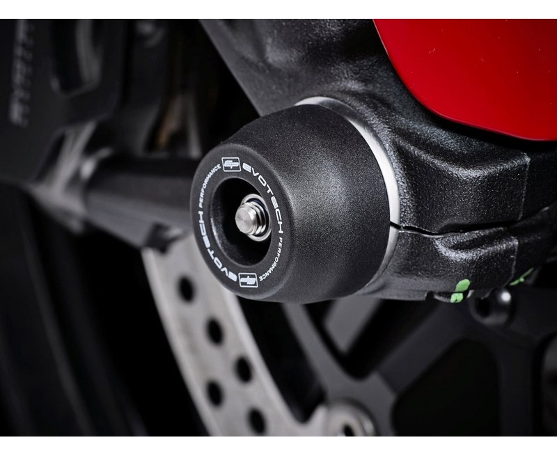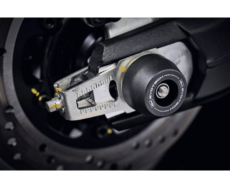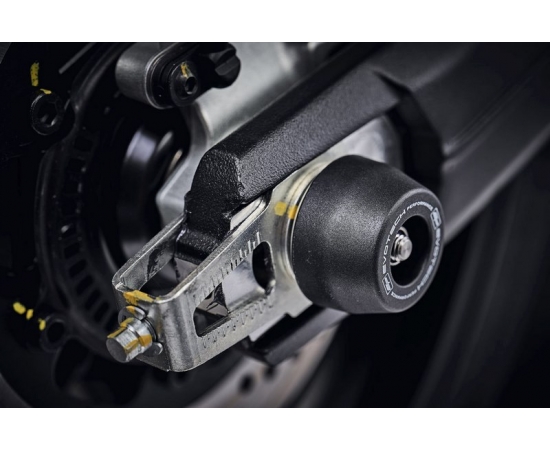 Protecting the front wheel spindle retainers, brake calipers, lower forks andsSwingarm, EP Spindle Bobbins for the Ducati Monster 797 are discreet yet strong protection. Spindle bobbins of black injection-moulded nylon sit either side of the wheel intending to be first to receive impact should an unlikely incident occur. The bobbins are above an aluminium inner, which adds strength, whilst the bobbins are still free to move with impact to reduce stress and wear.