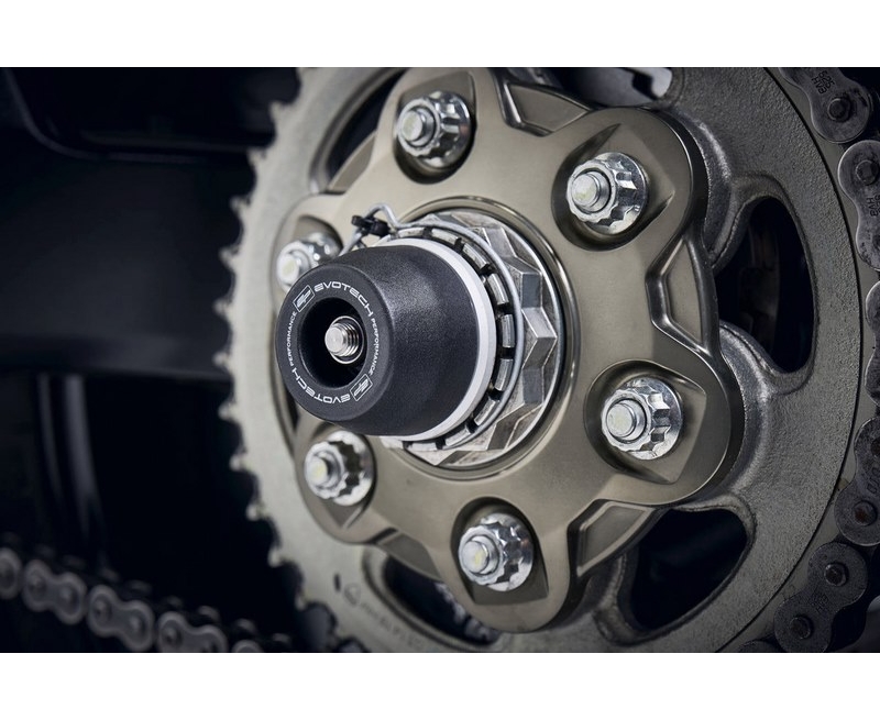 Protecting the wheel spindle retainers, brake calipers, lower forks and swingarm, EP Spindle Bobbins for the Ducati Multistrada 1200 are discreet yet strong protection. Spindle bobbins of black injection-moulded nylon stationed either side of the wheel intending to be first to receive impact should an unlikely incident occur. The bobbins sit over an aluminium inner, which adds strength, whilst the bobbins are still free to move with impact to reduce stress and wear.