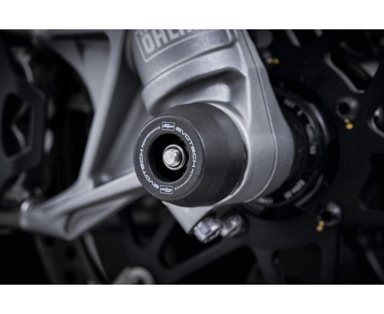 Offering protection to the wheel spindle, lower front forks, brake calipers and swingarm. EP spindle bobbins for the Ducati Multistrada 1200 Enduro are discreet yet strong. The black bobbins sit snugly either side of the wheel spindle, held in place by a rolled-thread spindle rod. The durable materials of injection-moulded nylon and aluminium hope to be first to receive impact should an incident occur. Additionally, the nylon outers are able to twist with impact to reduce stress and wear on the wheel and bobbins.