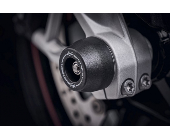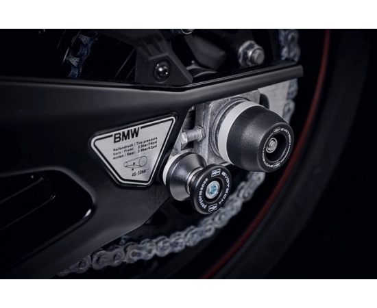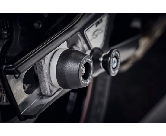 Manufactured from injection-moulded matt black nylon, EP Spindle Bobbins for the BMW S 1000 R offer discreet yet tough protection. With the additional support from the aluminium inner, the spindle bobbins aim to be the first to take impact in an incident and hold the expensive forks / swingarm, spindle retainers and brake calipers away from harm. The innovative EP design allows the nylon bobbins to rotate above the aluminium to decrease wear and stress on the wheel.