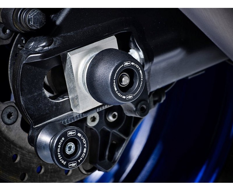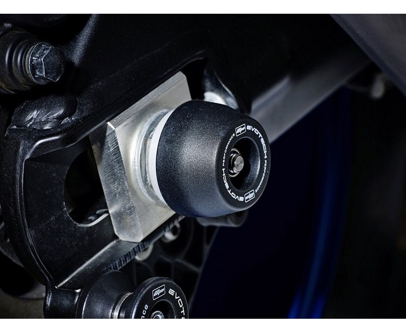 Offering protection to the wheel spindle, lower front forks, brake calipers and swingarm. EP spindle bobbins are discreet yet strong. The black bobbins sit snugly either side of the wheel spindle, held in place by a rolled-thread spindle rod. The durable materials of injection-moulded nylon and aluminium hope to be first to receive impact should an incident occur. Additionally, the nylon outers are able to twist with impact to reduce stress and wear on the wheel and bobbins.