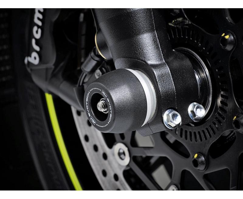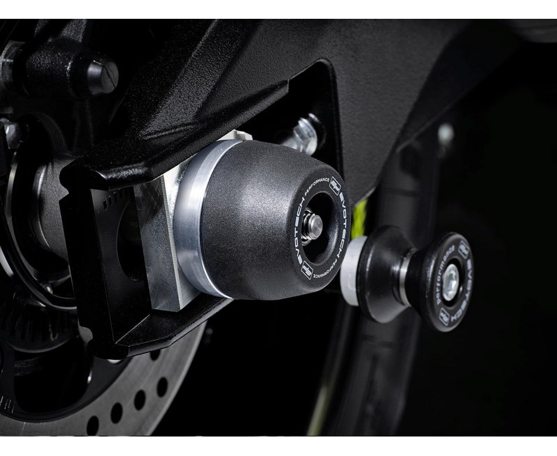 Offering protection to the wheel spindle, lower front forks, brake calipers and swingarm. EP spindle bobbins are discreet yet strong. The black bobbins sit snugly either side of the wheel spindle, held in place by a rolled-thread spindle rod. The durable materials of injection-moulded nylon and aluminium hope to be first to receive impact should an incident occur. Additionally, the nylon outers are able to twist with impact to reduce stress and wear on the wheel and bobbins.
