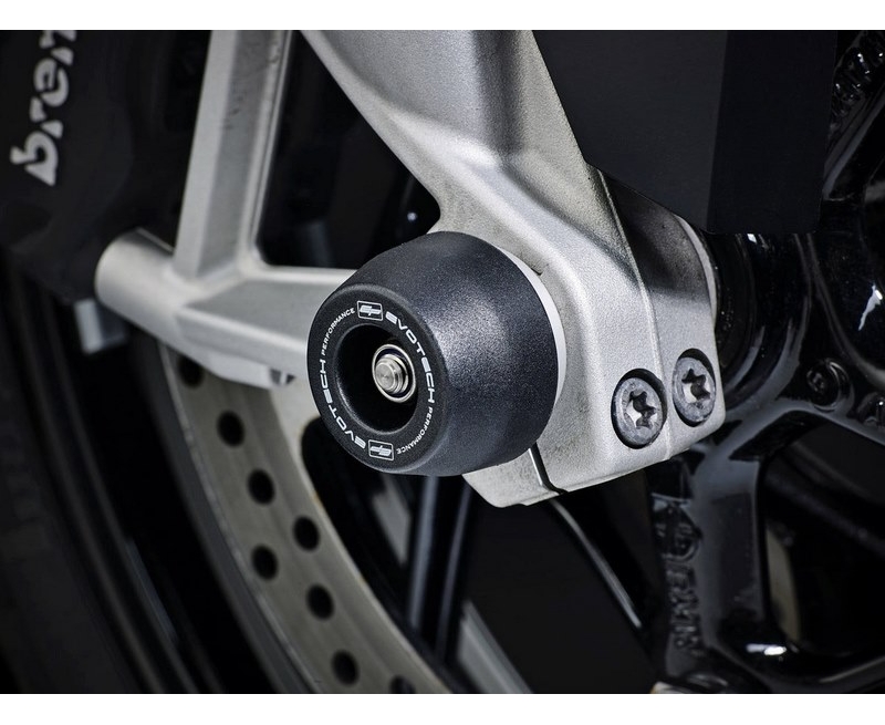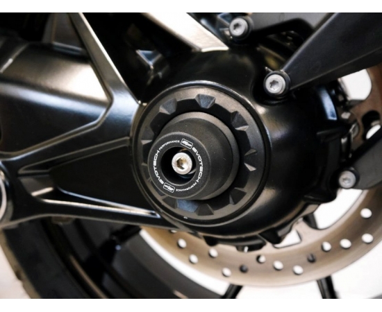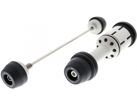 Innovatively designed to protect the front forks and brake calipers, EP Front Spindle Bobbins for the R 1200 GS are crafted from high quality materials. A robust nylon bobbin head sits over an aluminium core, fixed in place by a stainless steel spindle rod. The nylon is free to move over the aluminium which can reduce stress on the wheel. To assist fitting the Spindle Bobbins, a replacement hollow spindle bolt is provided.