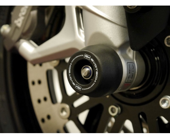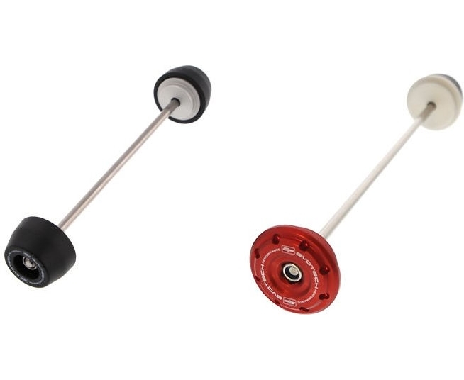 Offering protection to the wheel spindle, lower front forks, brake calipers and swingarm. EP spindle bobbins are discreet yet strong. The black bobbins sit snugly either side of the wheel spindle, held in place by a rolled-thread spindle rod. The durable materials of injection-moulded nylon and aluminium hope to be first to receive impact should an incident occur. Additionally, the nylon outers are able to twist with impact to reduce stress and wear on the wheel and bobbins.