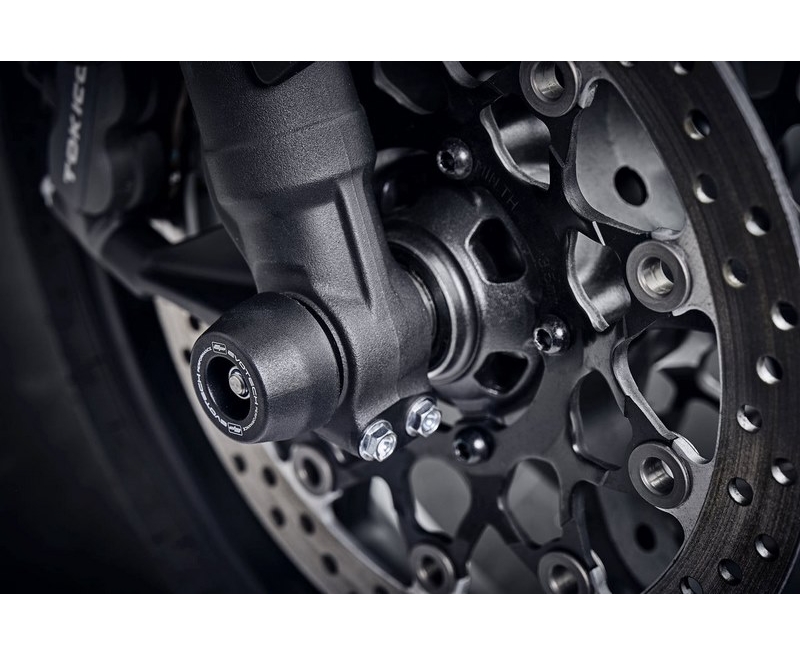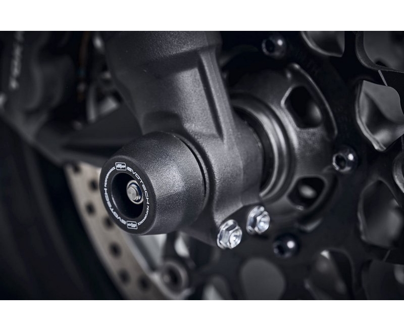 Using Evotech Performance's innovative design, EP Front Fork Spindle Bobbins for the Honda CB1000R Neo Sports Café offer crash protection to the lower front forks. The nylon bobbin is able to rotate with any impact to reduce stress and wear on the lower front end. Surrounded by the nylon is a strong aluminium inner which connects to the front wheel via a rolled thread stainless steel spindle. Finally, for the crash protectors to fit to the Honda Neo Sports Café, a replacement spindle bolt is provided with a through-hole for the spindle rod.