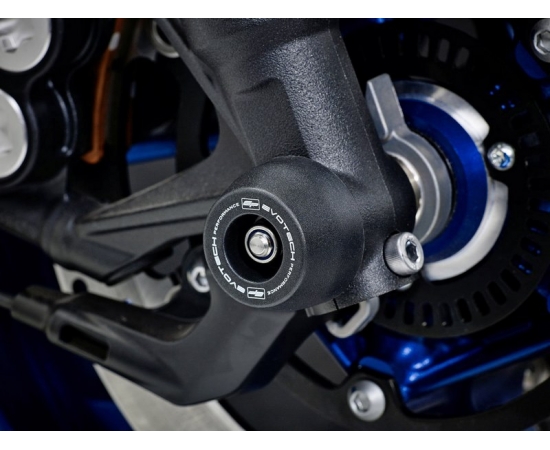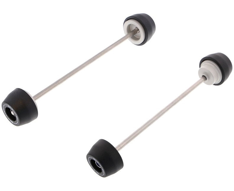 Offering protection to the wheel spindle, lower front forks, brake calipers and swingarm. EP spindle bobbins are discreet yet strong. The black bobbins sit snugly either side of the wheel spindle, held in place by a rolled-thread spindle rod. The durable materials of injection-moulded nylon and aluminium hope to be first to receive impact should an incident occur. Additionally, the nylon outers are able to twist with impact to reduce stress and wear on the wheel and bobbins.