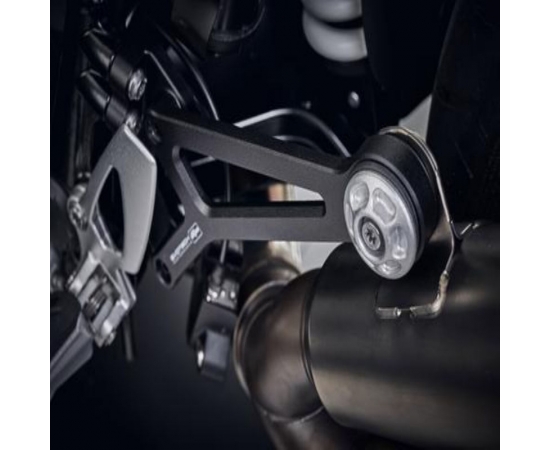 Evotech Performance have manufactured an exhaust hanger that is a direct replacement for you OEM pillion peg under seat frame support.
