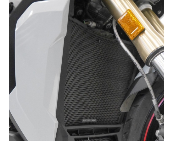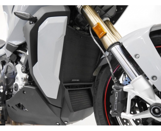 Evotech Performance guards are secured in place using original mounting points on the bike. No cable ties in sight. The elegantly designed matrix is pierced with hexagonal holes to optimise airflow whilst providing maximum protection from road debris. Our BMW S 1000 XR guards boast remarkable strength to weight ratio, with a combined weight of 420 grammes. The guards are finished in durable black powder coating for longevity. Easy to follow pictorial instructions are available on the site.