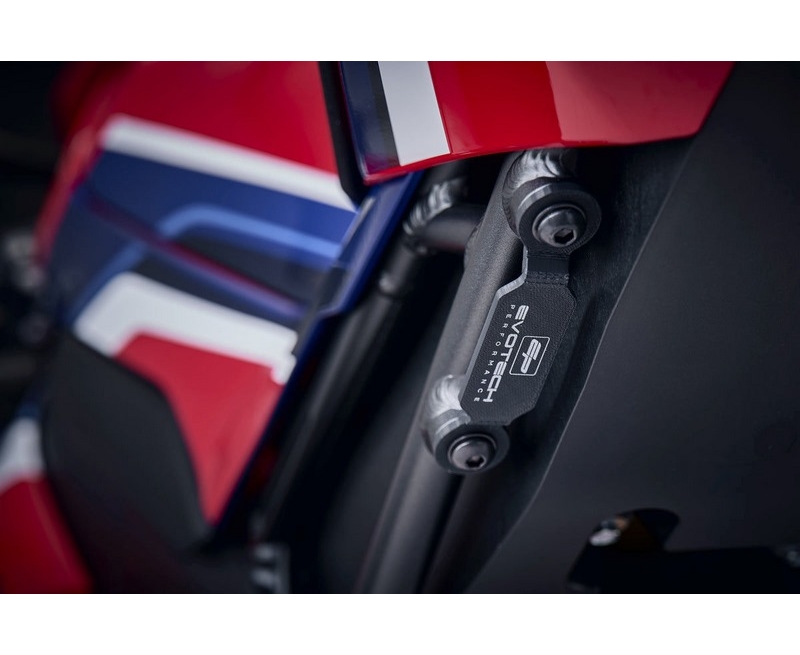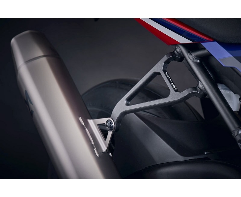 Evotech Performance have manufactured an exhaust hanger blanking plate kit that is a direct replacement for both OEM pillion pegs.